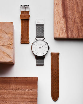 Nuestras correas de cuero adicionales para reloj están diseñadas para transformar tu estilo en segundos. Gracias al sistema de correa intercambiable Ábaco, cambiar el look de tu reloj es tan simple como un movimiento. Sin herramientas, sin esfuerzo, solo decisión.