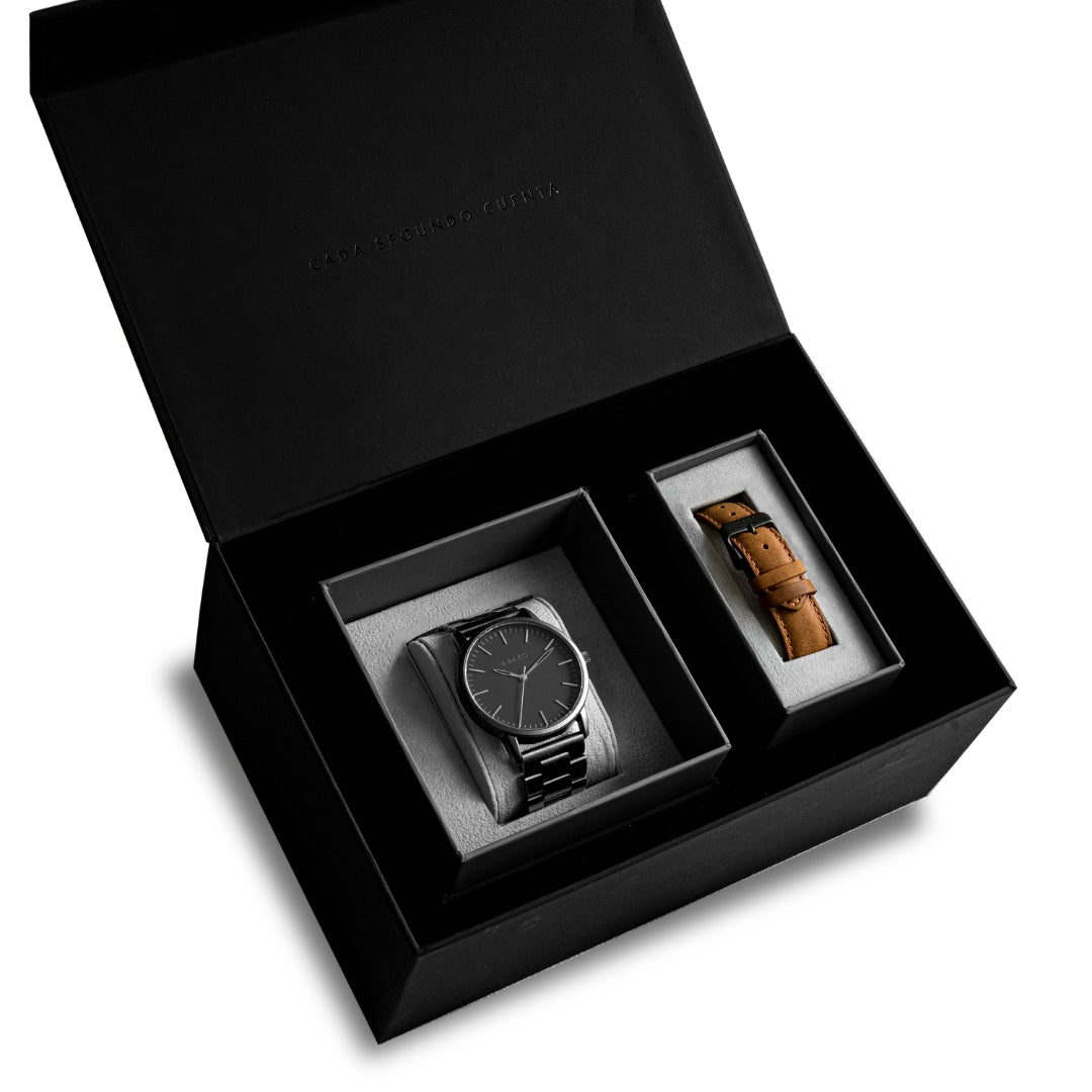 Incluye: Reloj Stark con brazalete de acero + correa de cuero adicional.