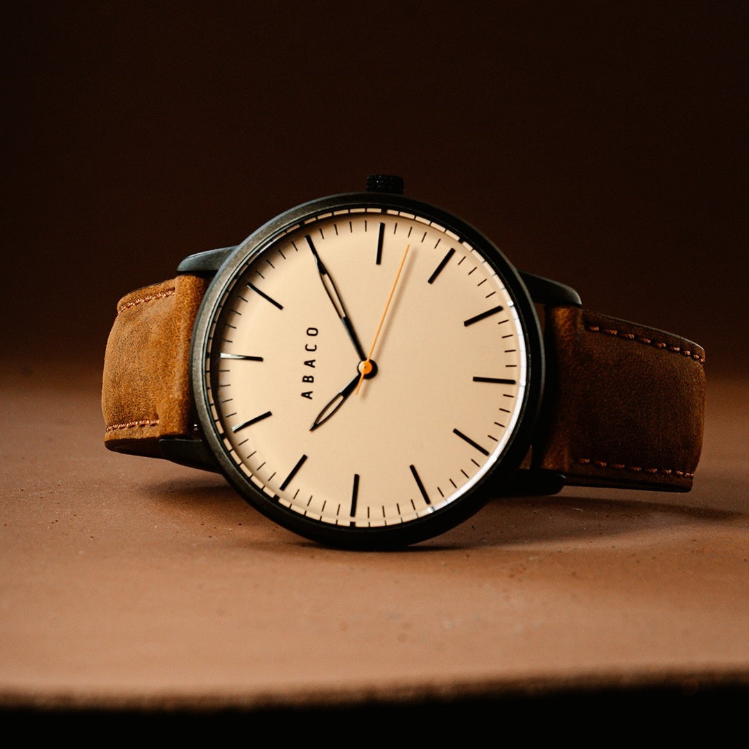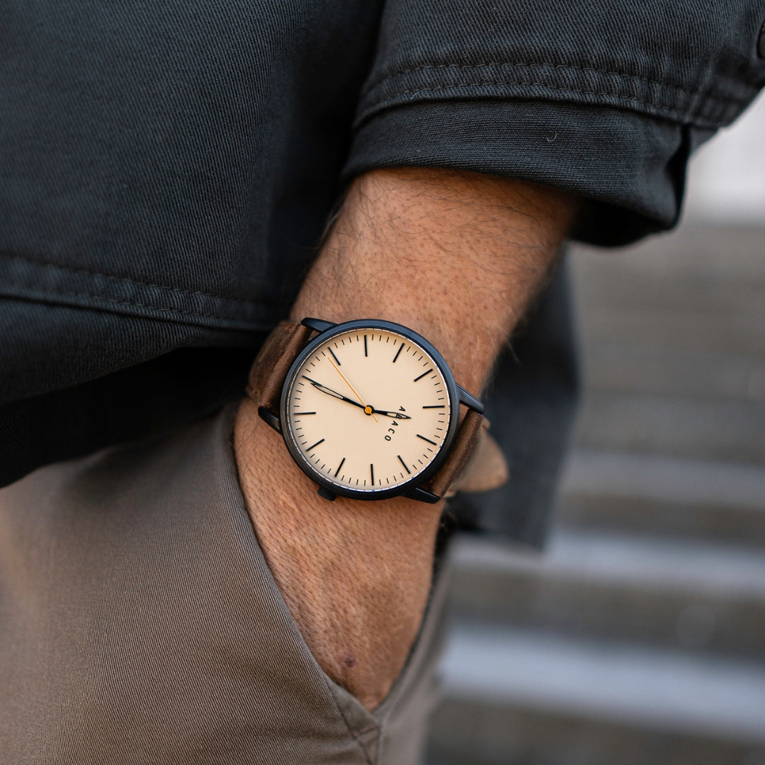Reloj hombre 42mm con caja negra mate y dial crema minimalista | Tesla Acero | Colección Original | Ábaco Reloj hombre 42mm con caja negra mate y dial crema minimalista | Tesla Acero | Colección Original | Ábaco